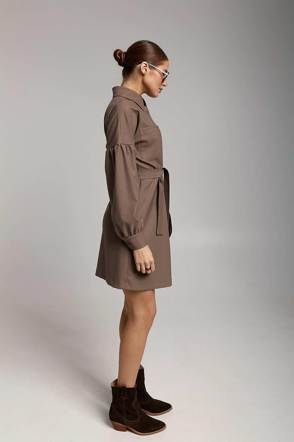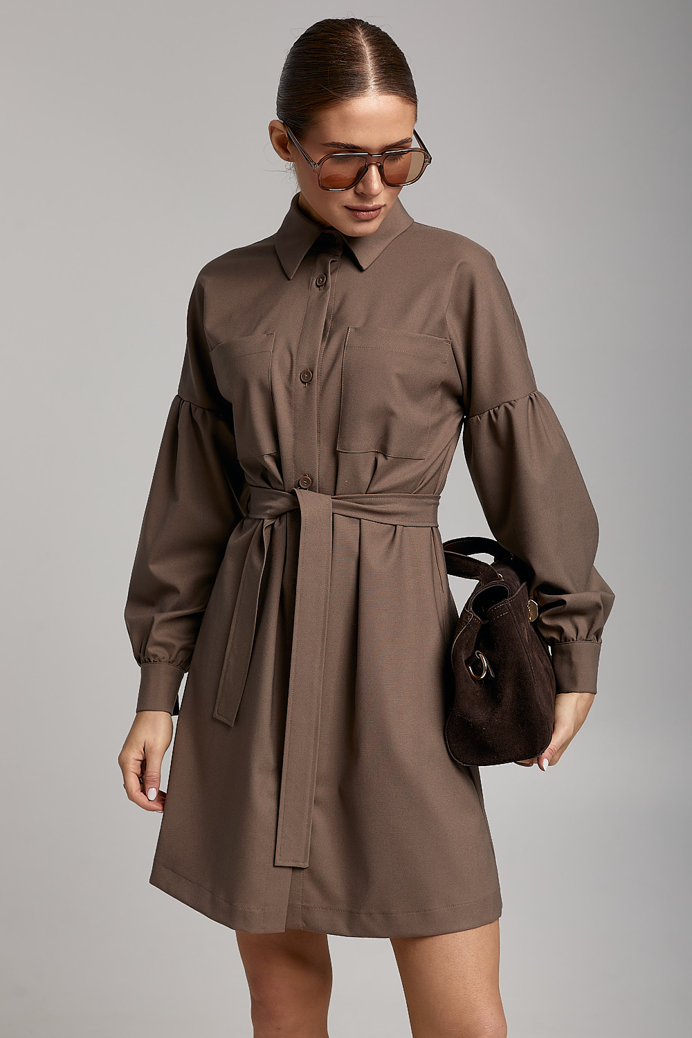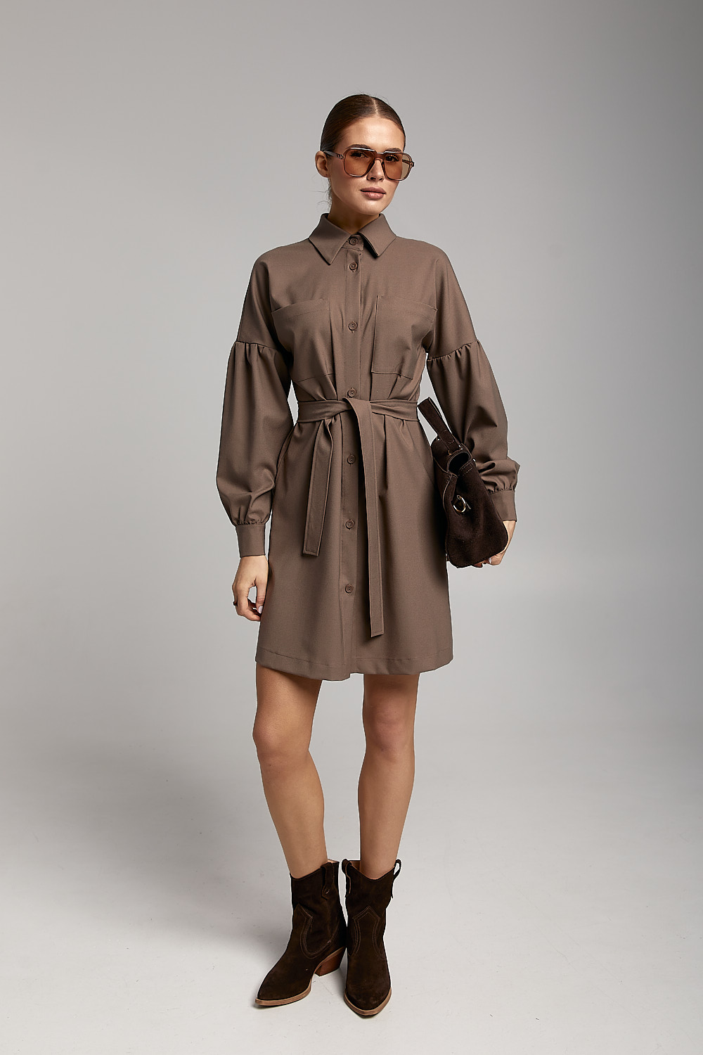 Платье-рубашка ARTMON с объемными рукавами цвета мокко