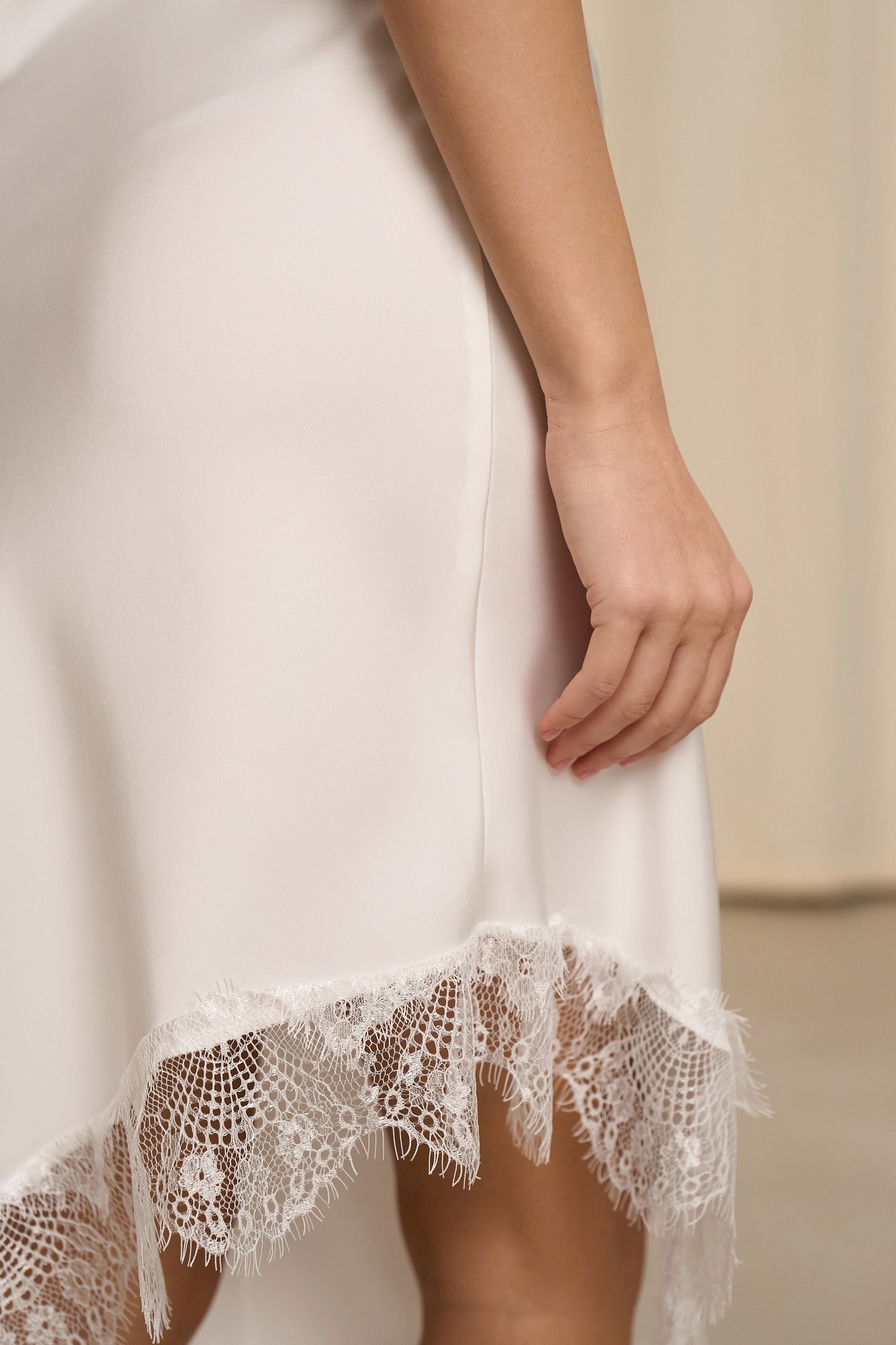 Утонченное молочное платье ARTMON с ассиметричным низом на бретелях