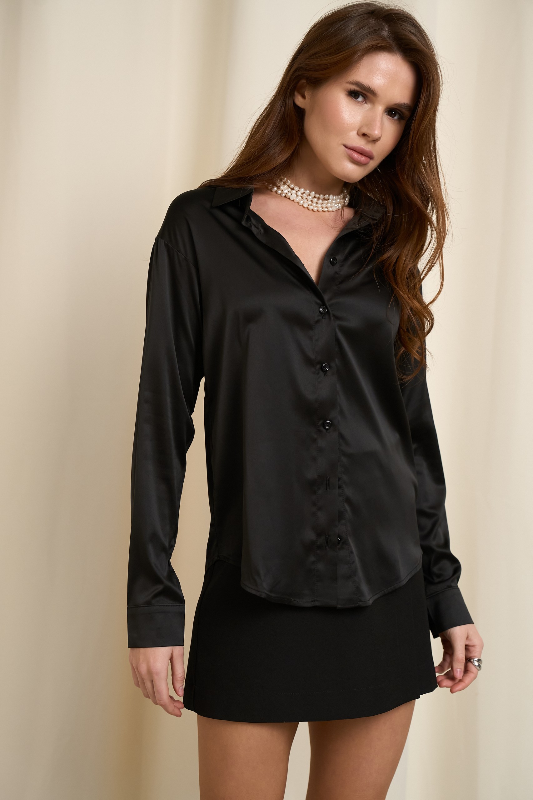 Жіноча чорна шовкова сорочка ÁRTMON вільного силуету