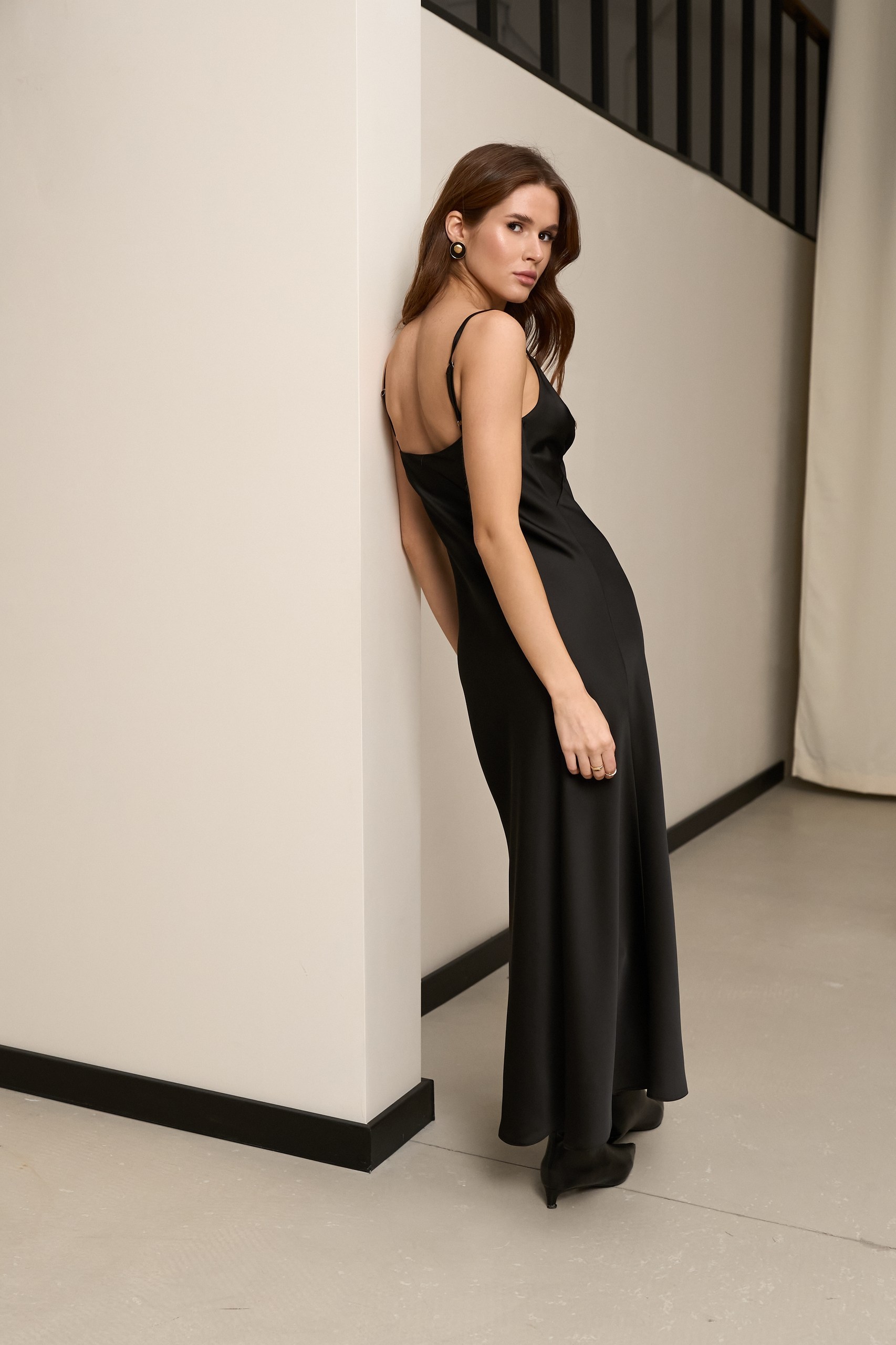 Чорна шовкова елегантна сукня ARTMON на тонких бретелях