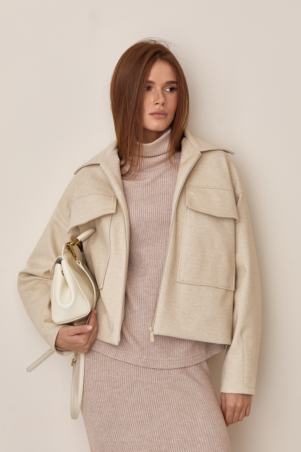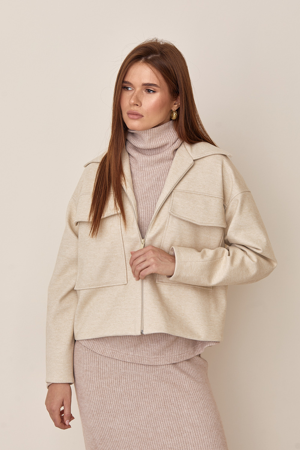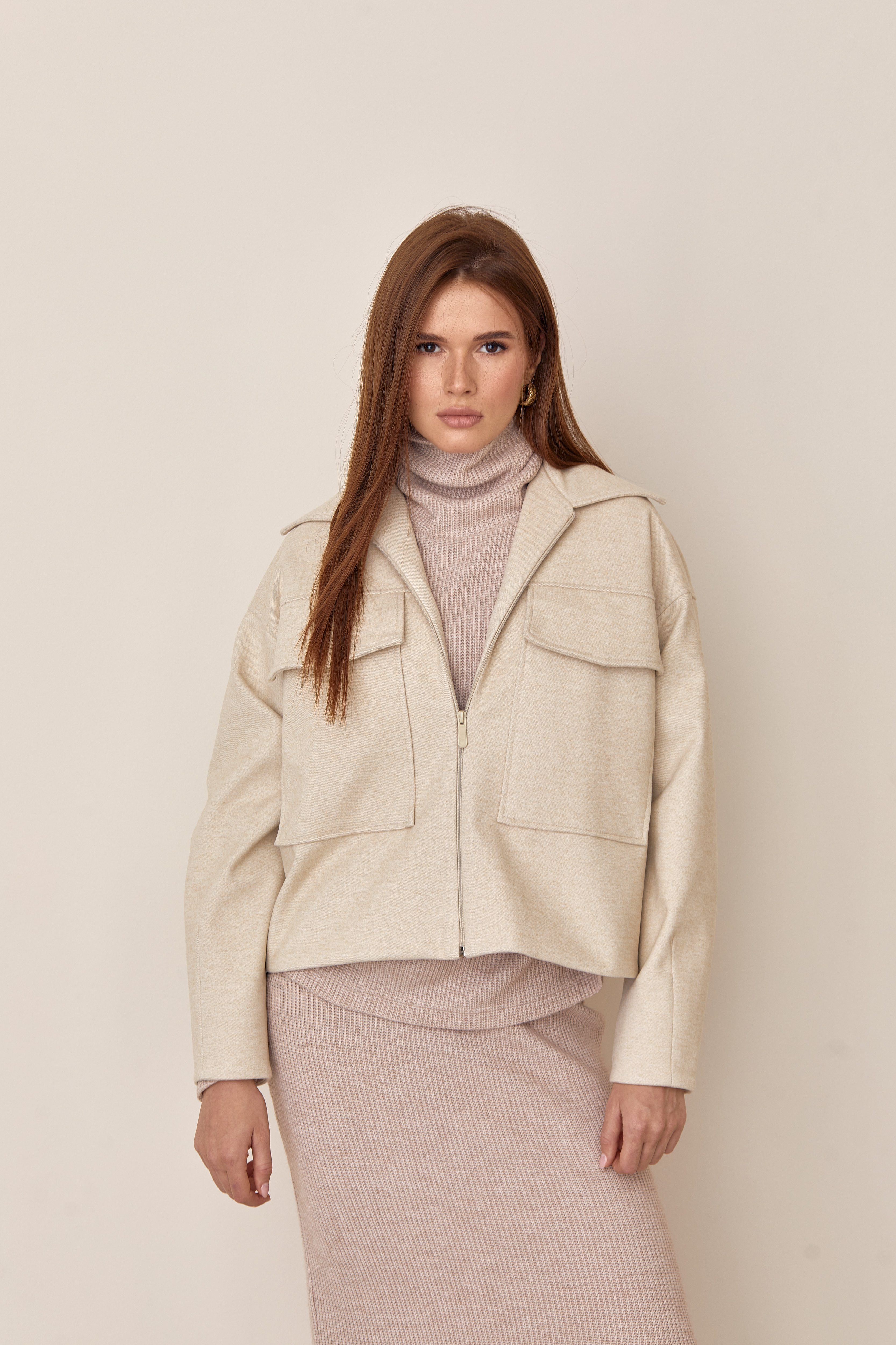 Бежевий бомбер жіночий ÁRTMON з накладними кишенями