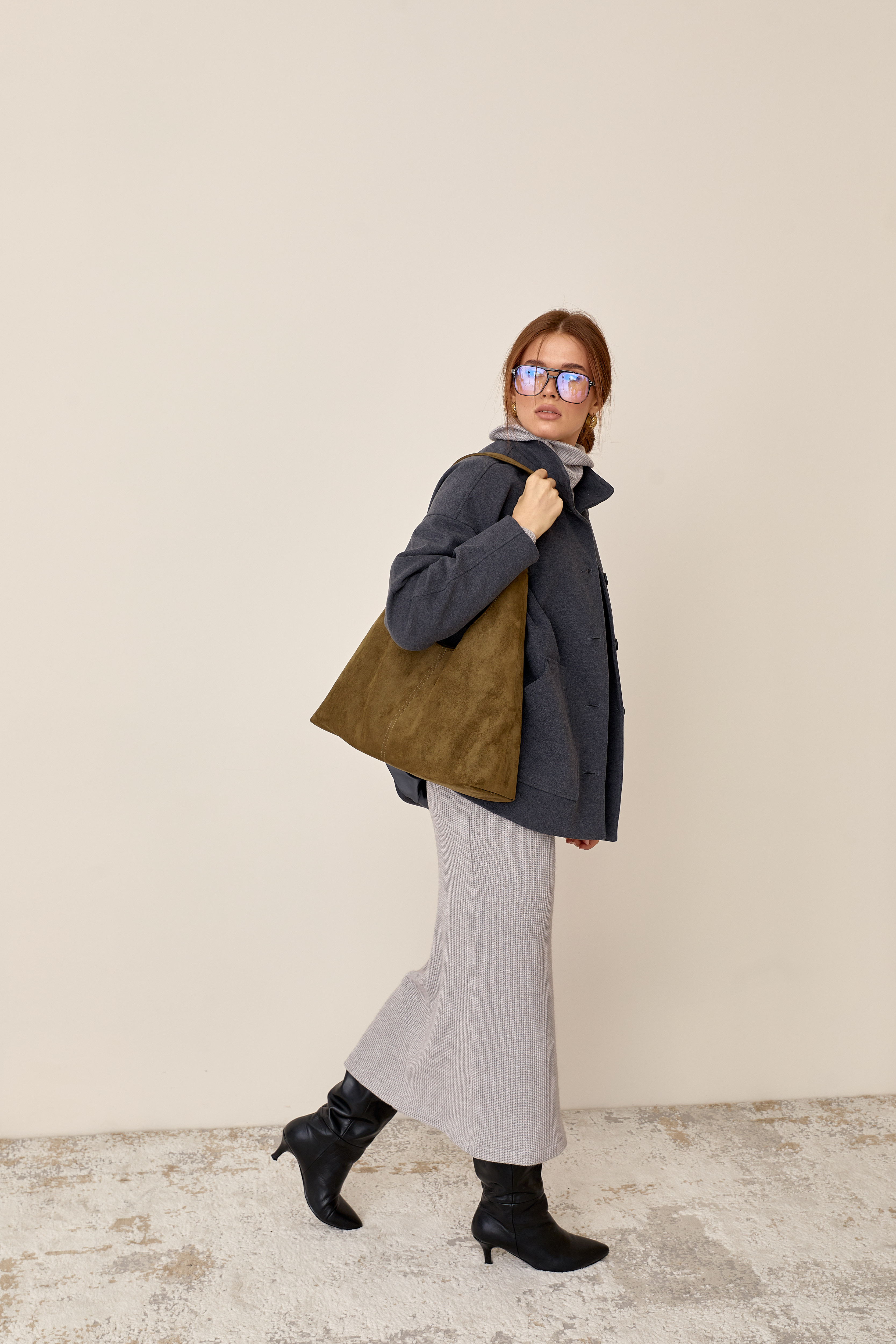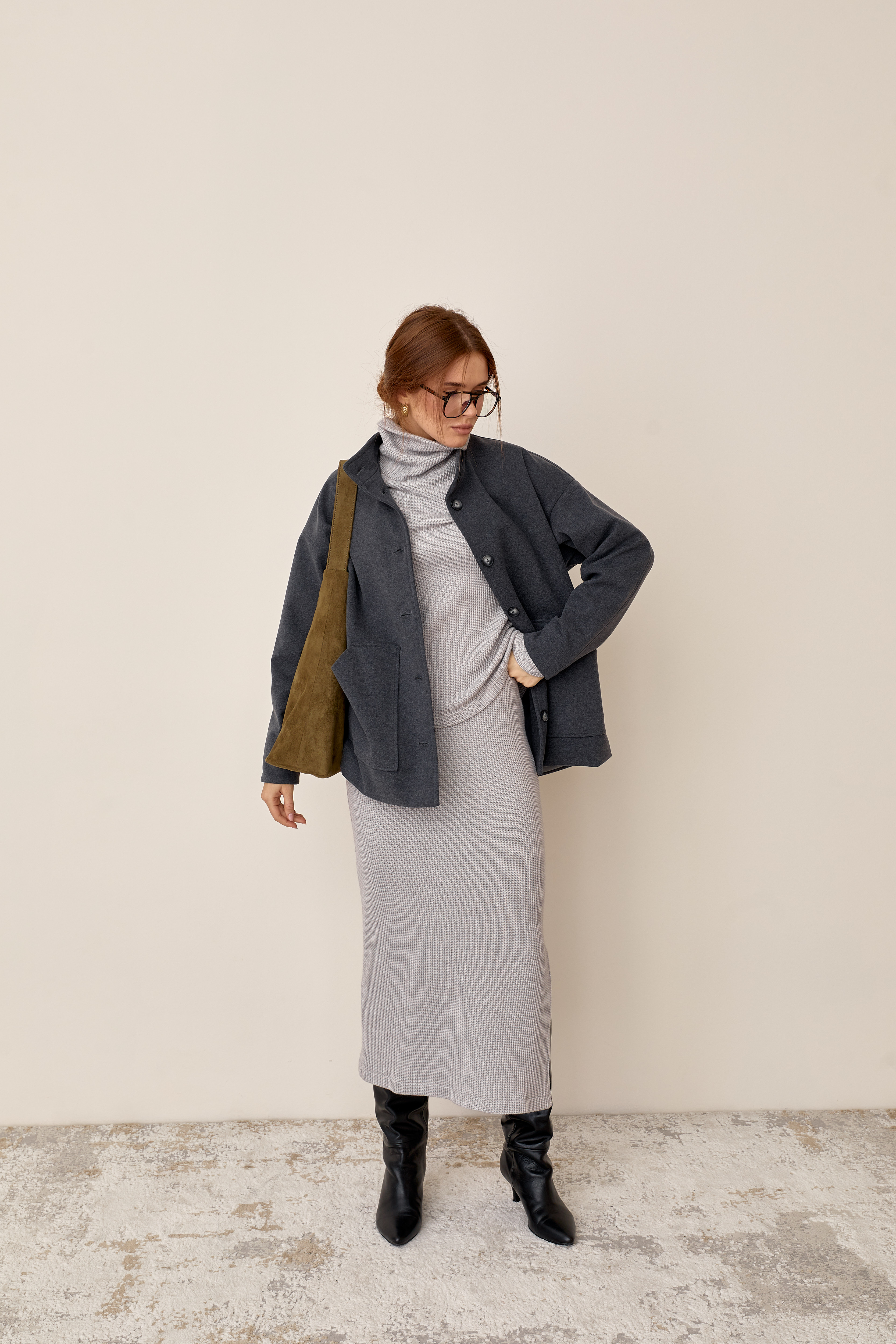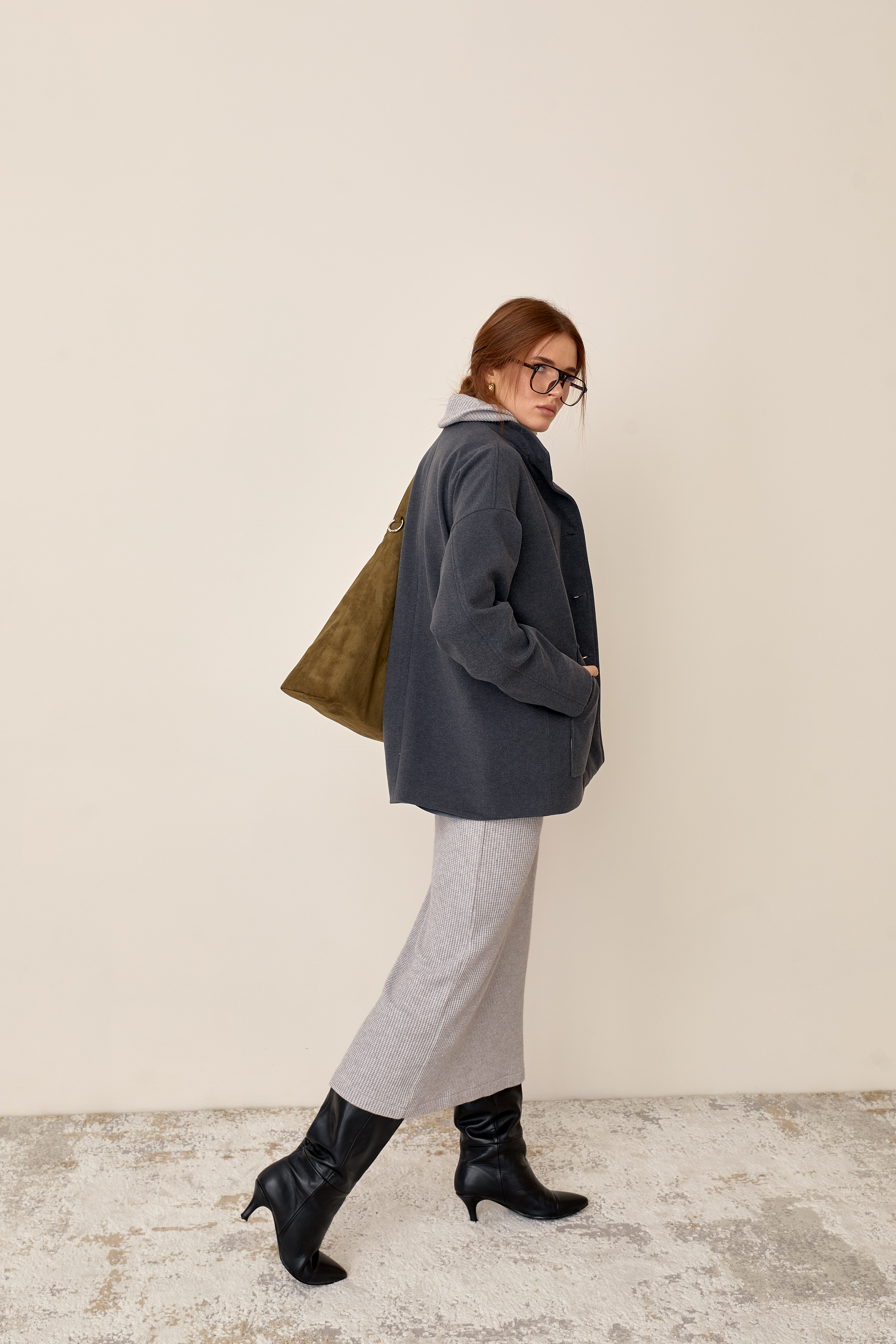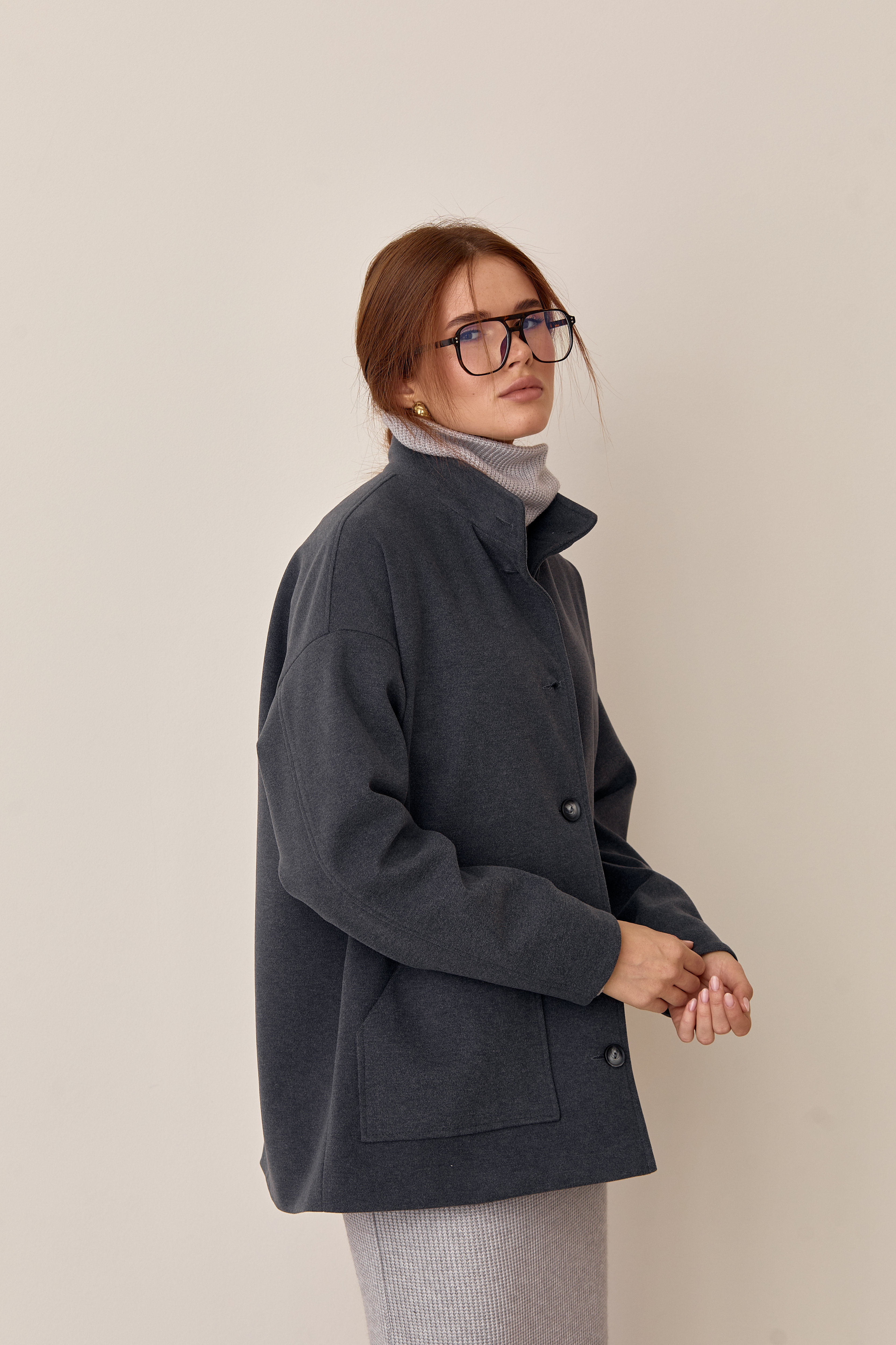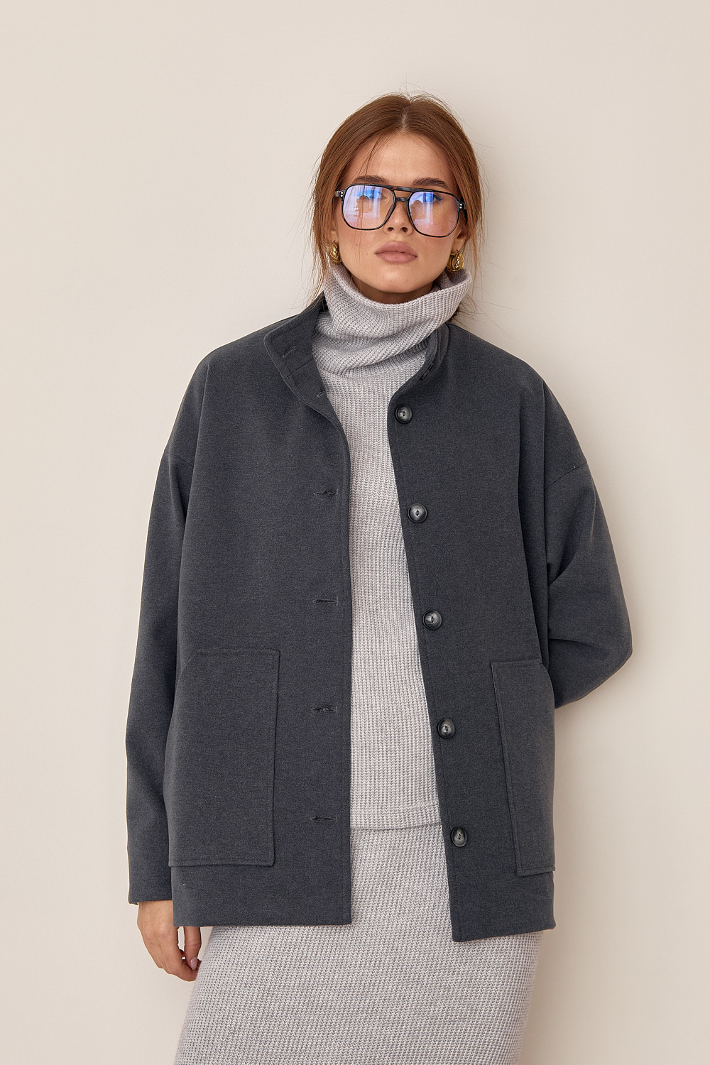 Жіночий бомбер ÁRTMON кольору графіт з кишенями, з застібкою гудзики