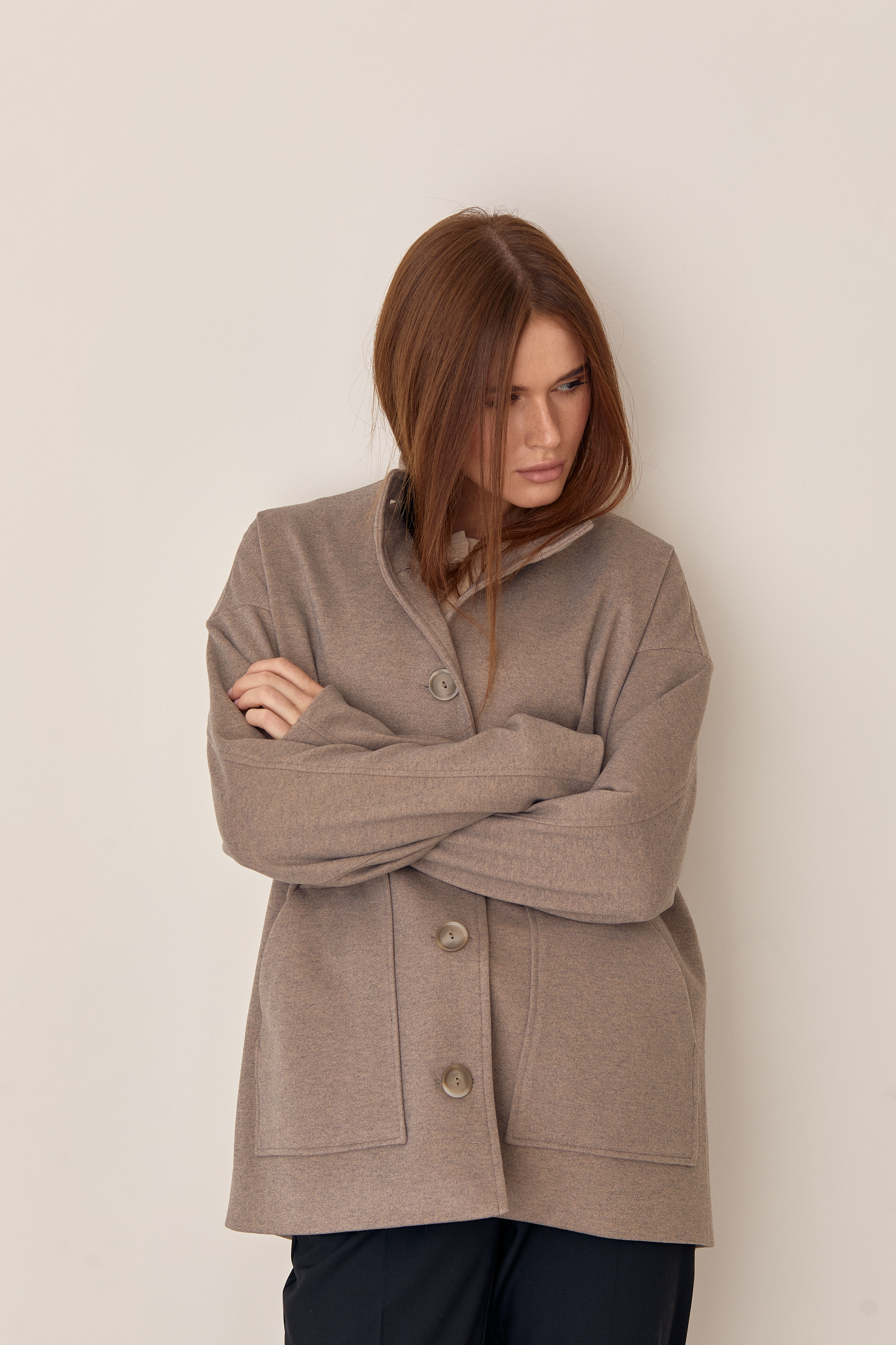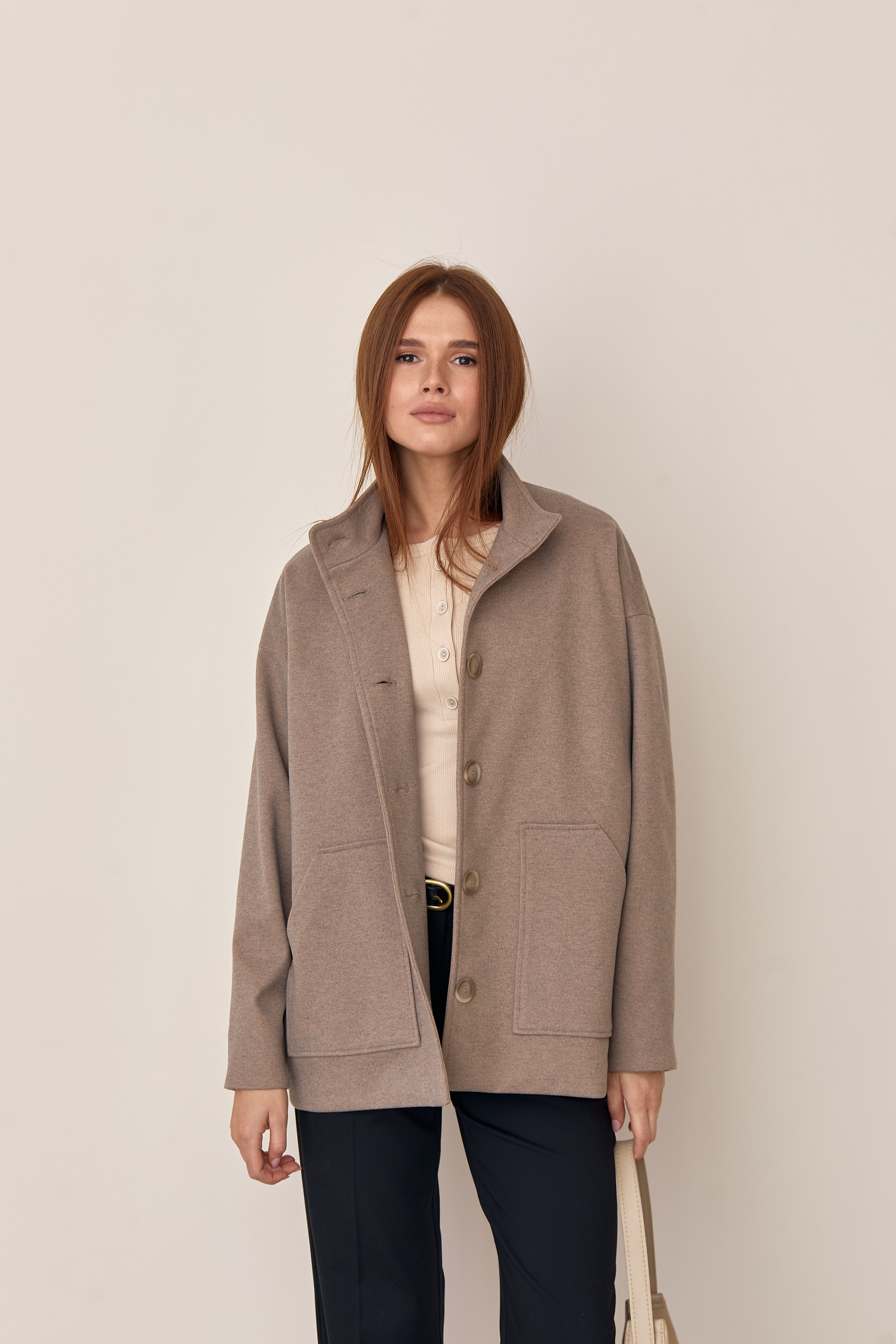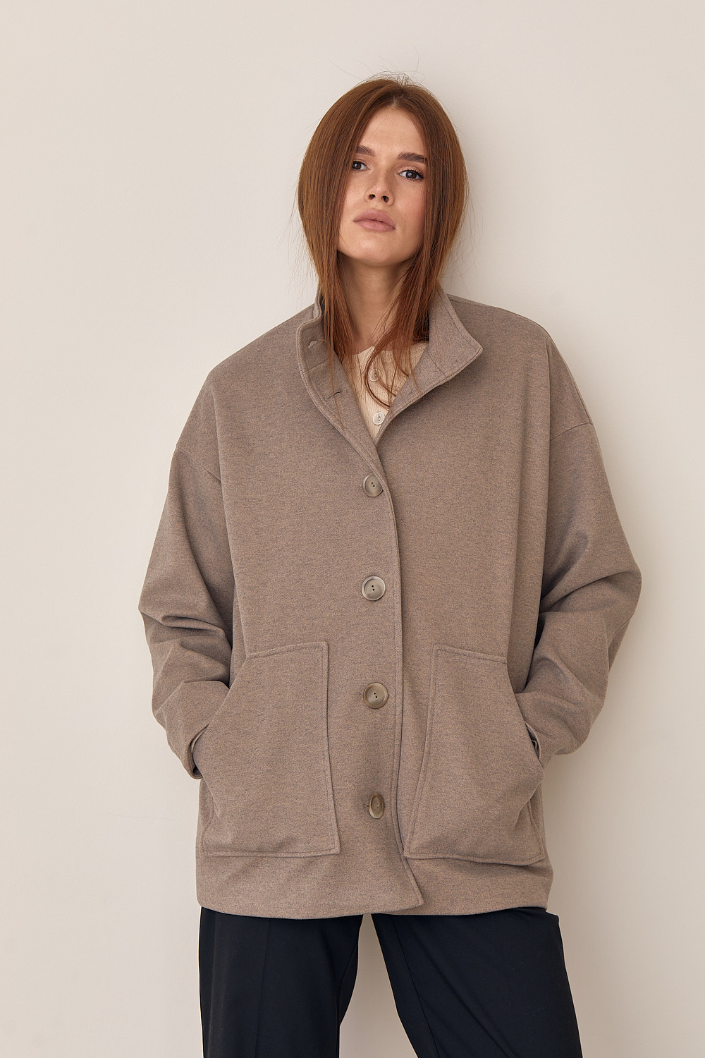 Жіночий бомбер ÁRTMON кольору капучино з кишенями, з застібкою гудзики
